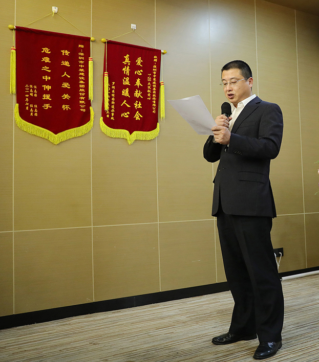 ▲高级副总裁杨战宣读公司管理干部调整和任命文件